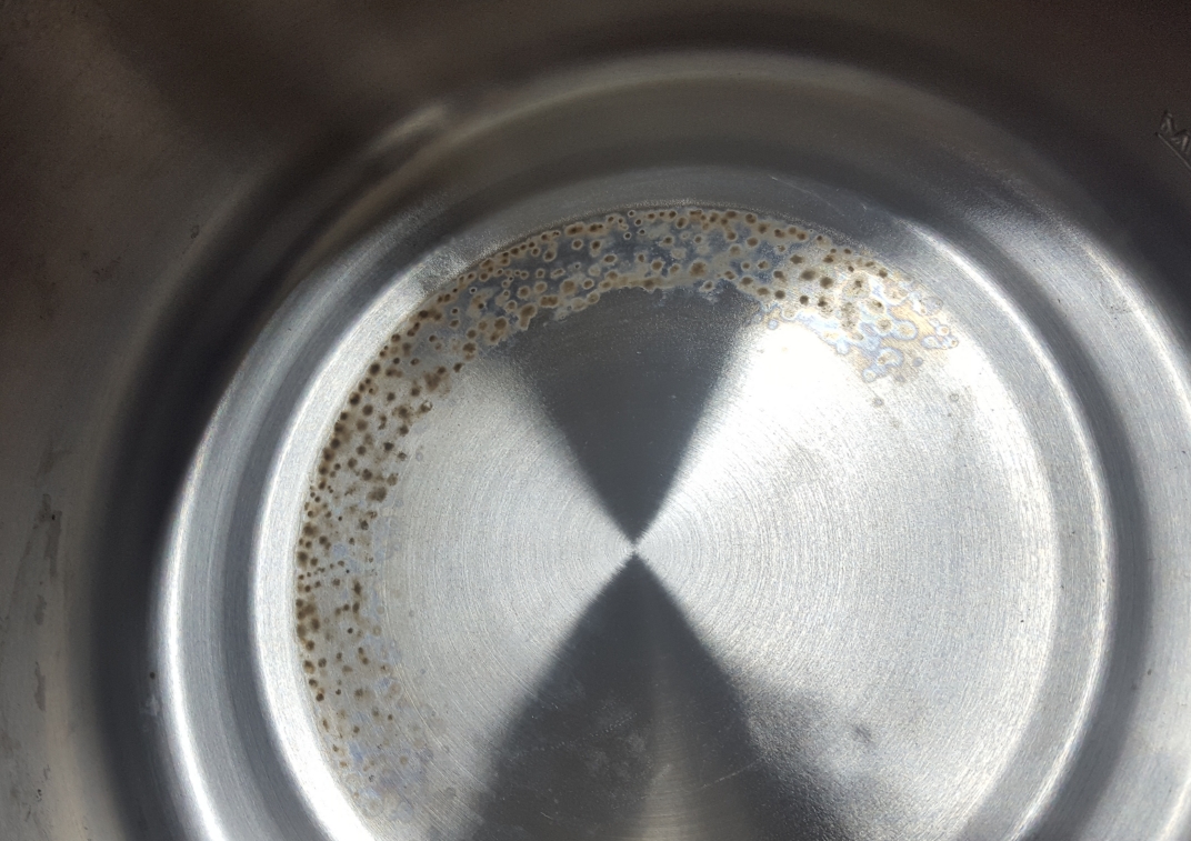 문제가 생겼네요.. 바닥을 청소하려고 보니까 저런 것이 생겨 났습니다. 아무리 닦아도 안 지워지길래 원래 그런가 보다 싶었는데... 문제는 다음날 한번 더 물을 넣고 끓였는데 저 부위에서 세상에..