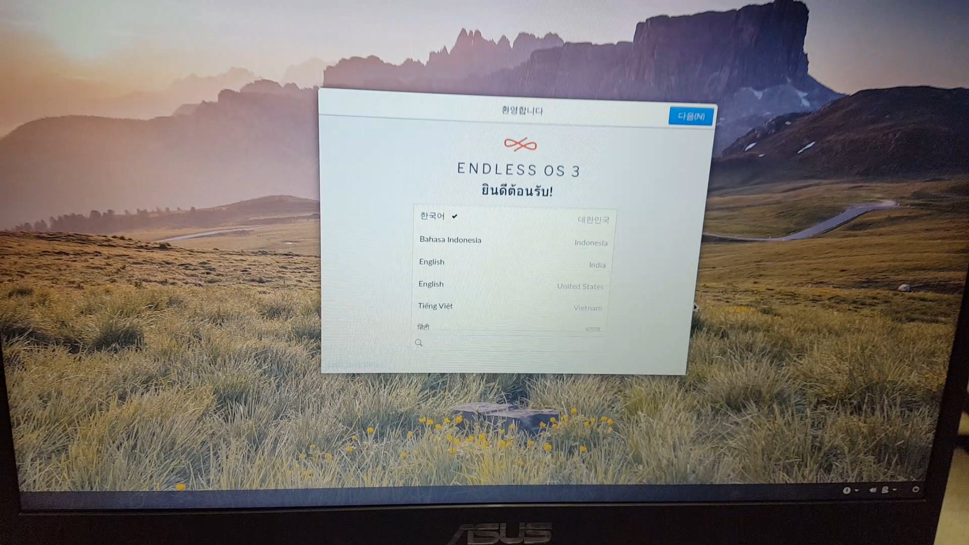 구매할 때 운영체제 미포함 버전을 구입하였더니 이렇게 부팅하니 엔드리스 os가 뜨는 것이었습니다.