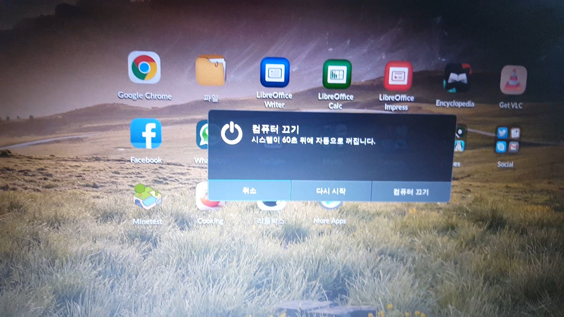 60초 후에 꺼진다고 하는데 바로 우측 하단 컴퓨터 끄기를 눌러서 종료를 했습니다.