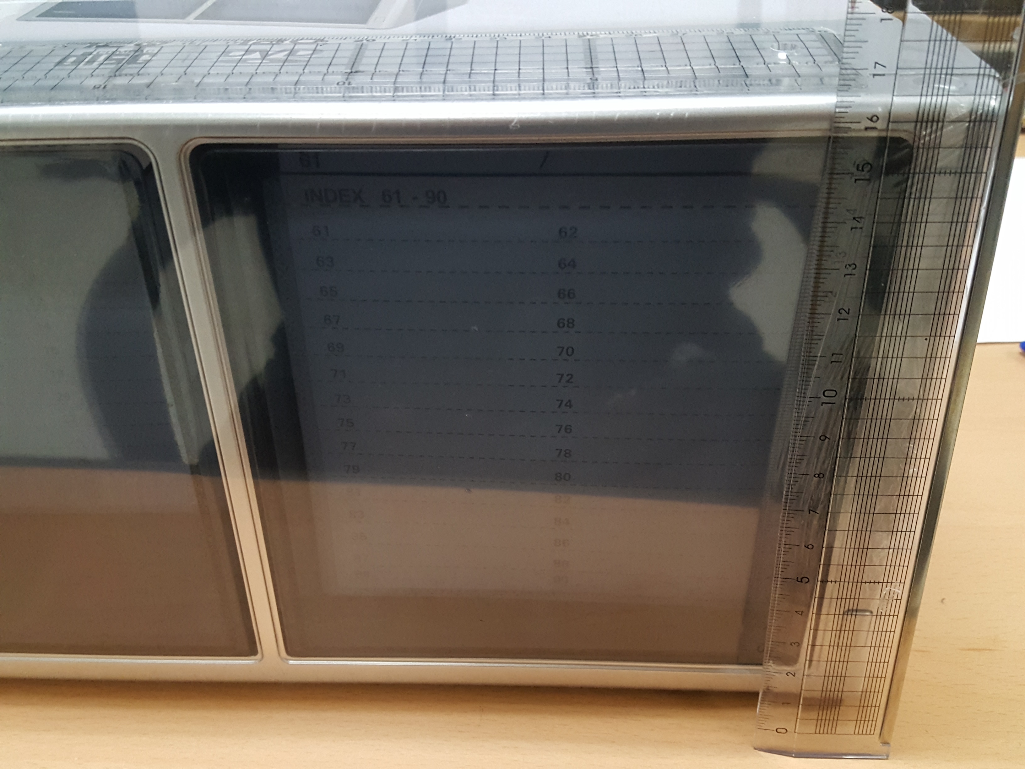 직사각형의 플라스틱 제품인데 dvd를 종류별로 쉽게 인덱스를 써놓고 보관하며 수시로 꺼내서 사용하고 집어넣고 그런다면 이 제품이 딱이다.