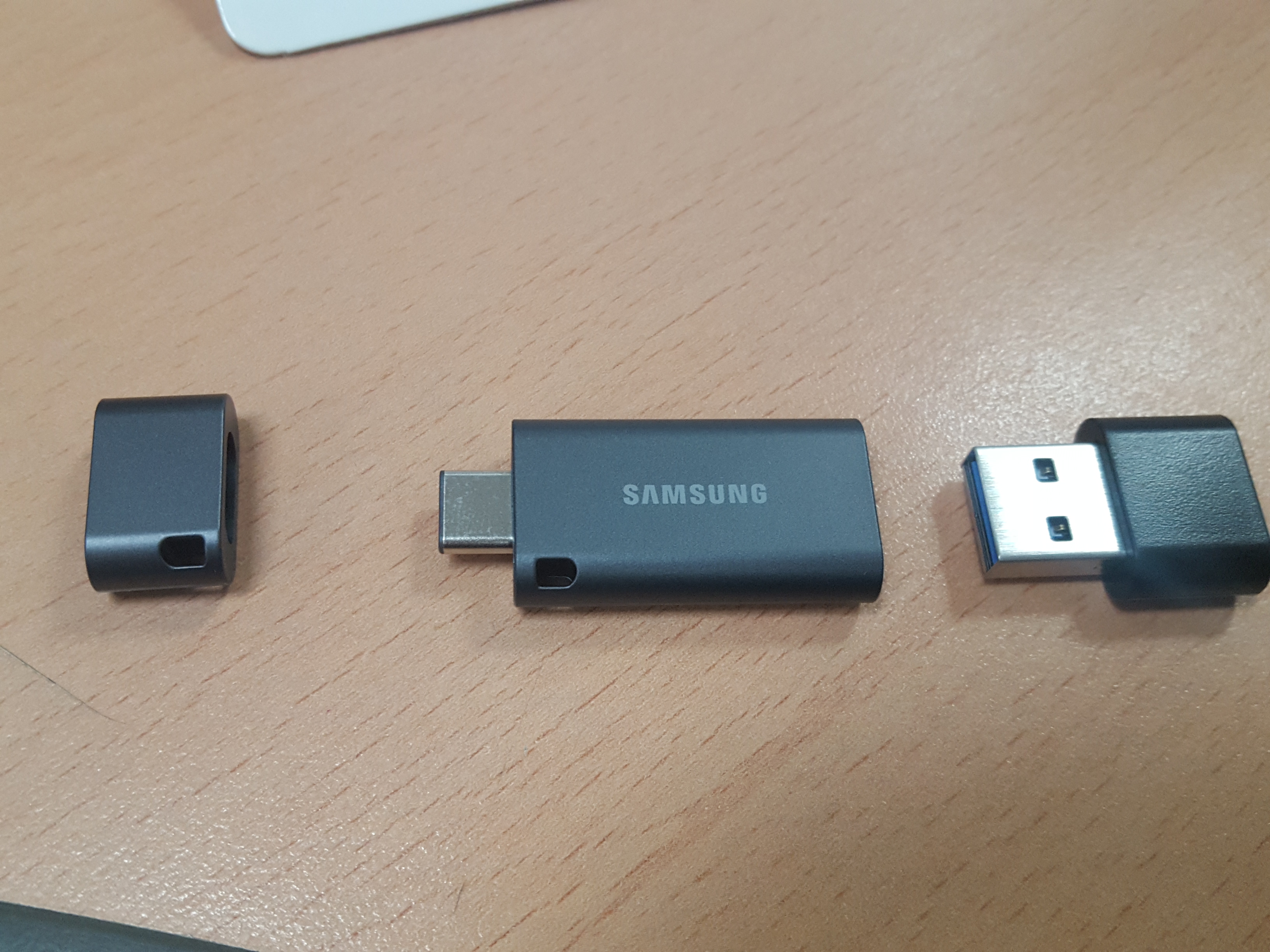 이렇게 생겼는데 3가지 파트로 구성되어 있다. 좌측 끝은 c타입단자를 닫아주는 뚜껑이다. 뚜껑 분실을 원하지 않으면 c타입메모리본체와 뚜껑을 끈같은것으로 묶어주는게 좋을것같다. 아쉽게도 핸드폰 고리줄 같은 것 즉 묶을 것은 들어있지 않다.