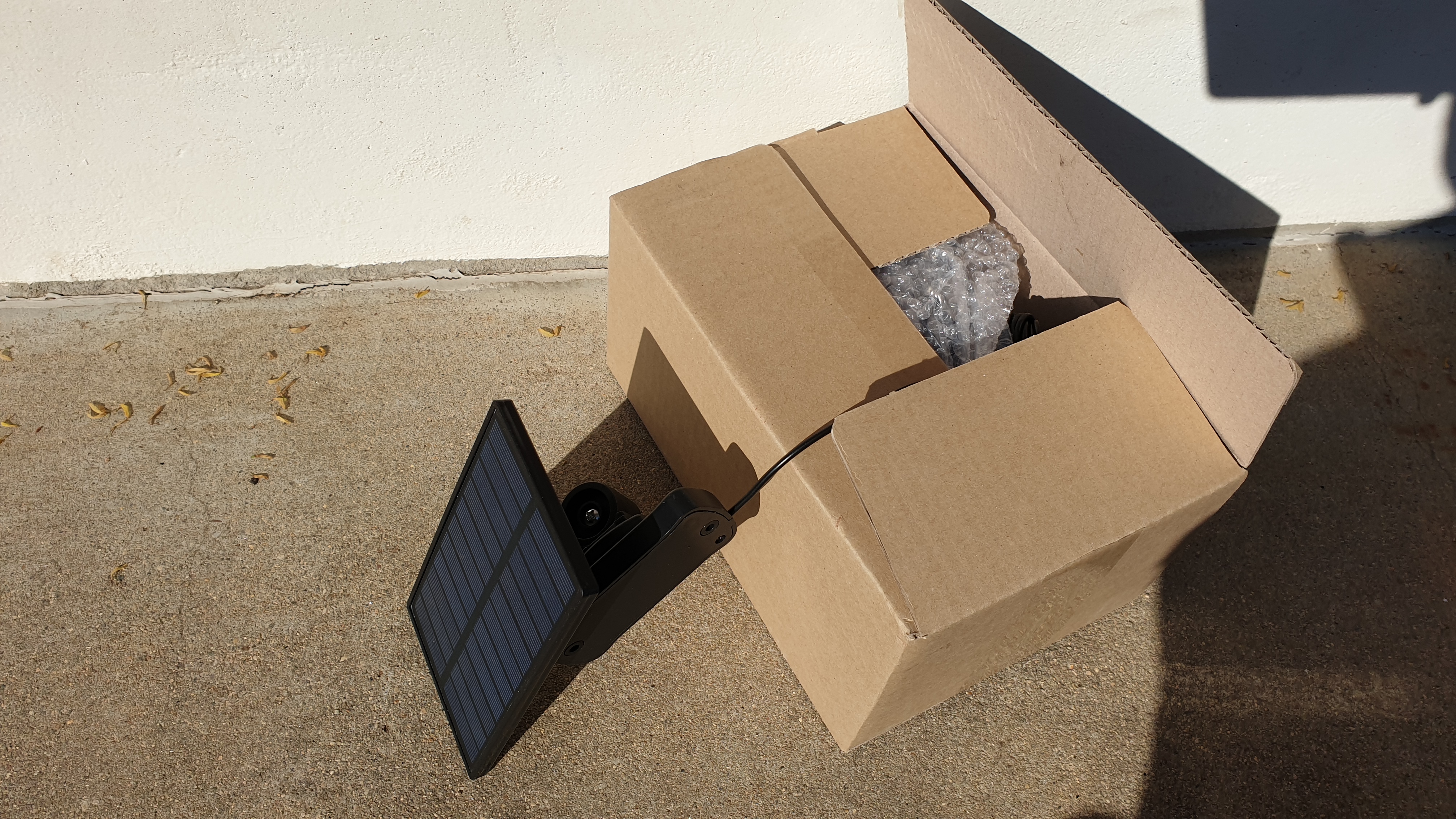 태양을 피해서 박스에 조명은 두고 연결한 패널만 밖으로 두고 종일 충전함.