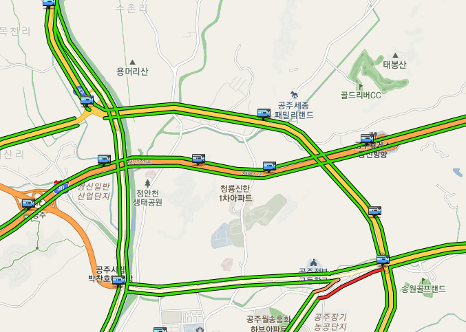 현제 공주의 하천변 상황을 보기 위해서 교통 cctv로 도로와 하천변을 보고 있습니다.