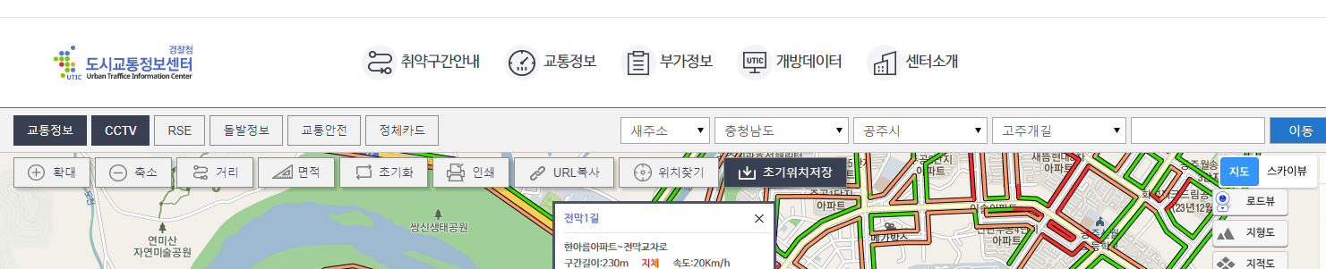 이곳에 가셔서 우측에 주소를 넣으시면 해당 도시구역의 cctv를 볼수 있습니다.