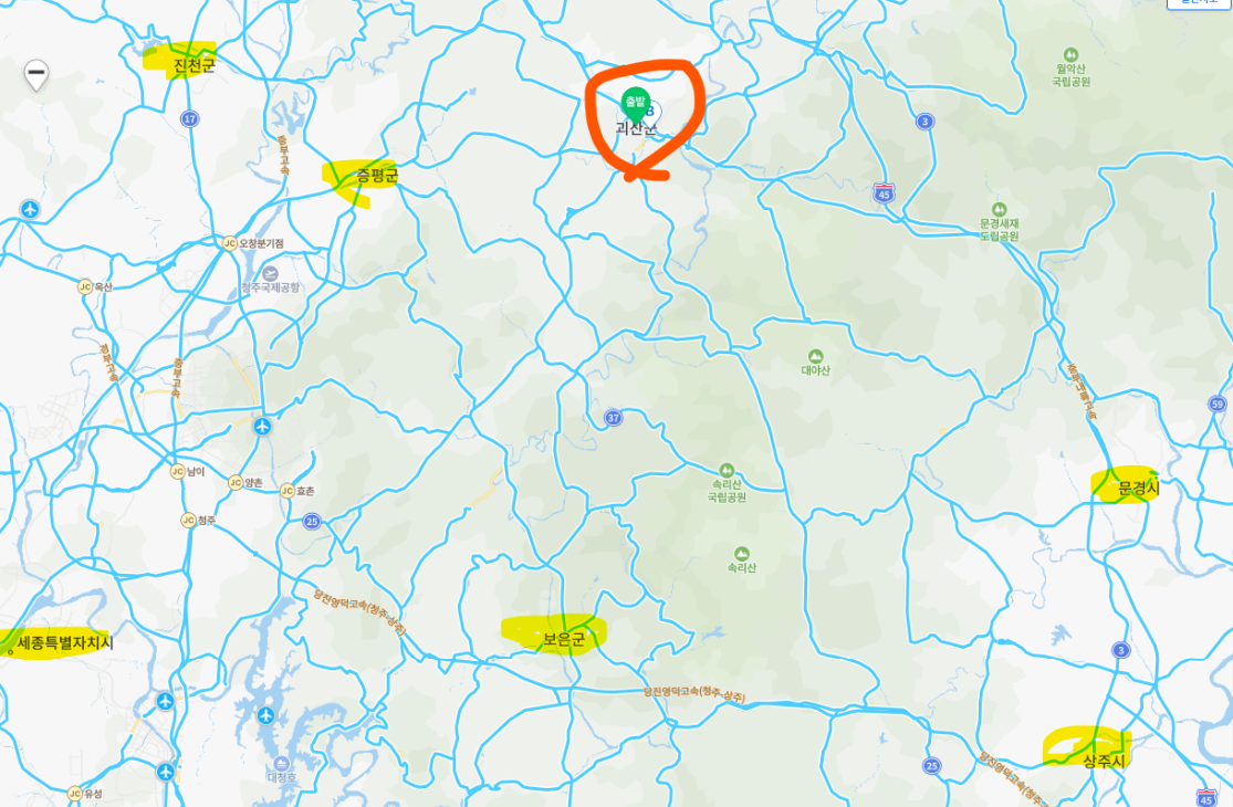 괴산군의 위치는 아래로는 보은 남동쪽으로는 문경 서쪽으로 증평 서남으로는 세종시를 두고 있습니다.