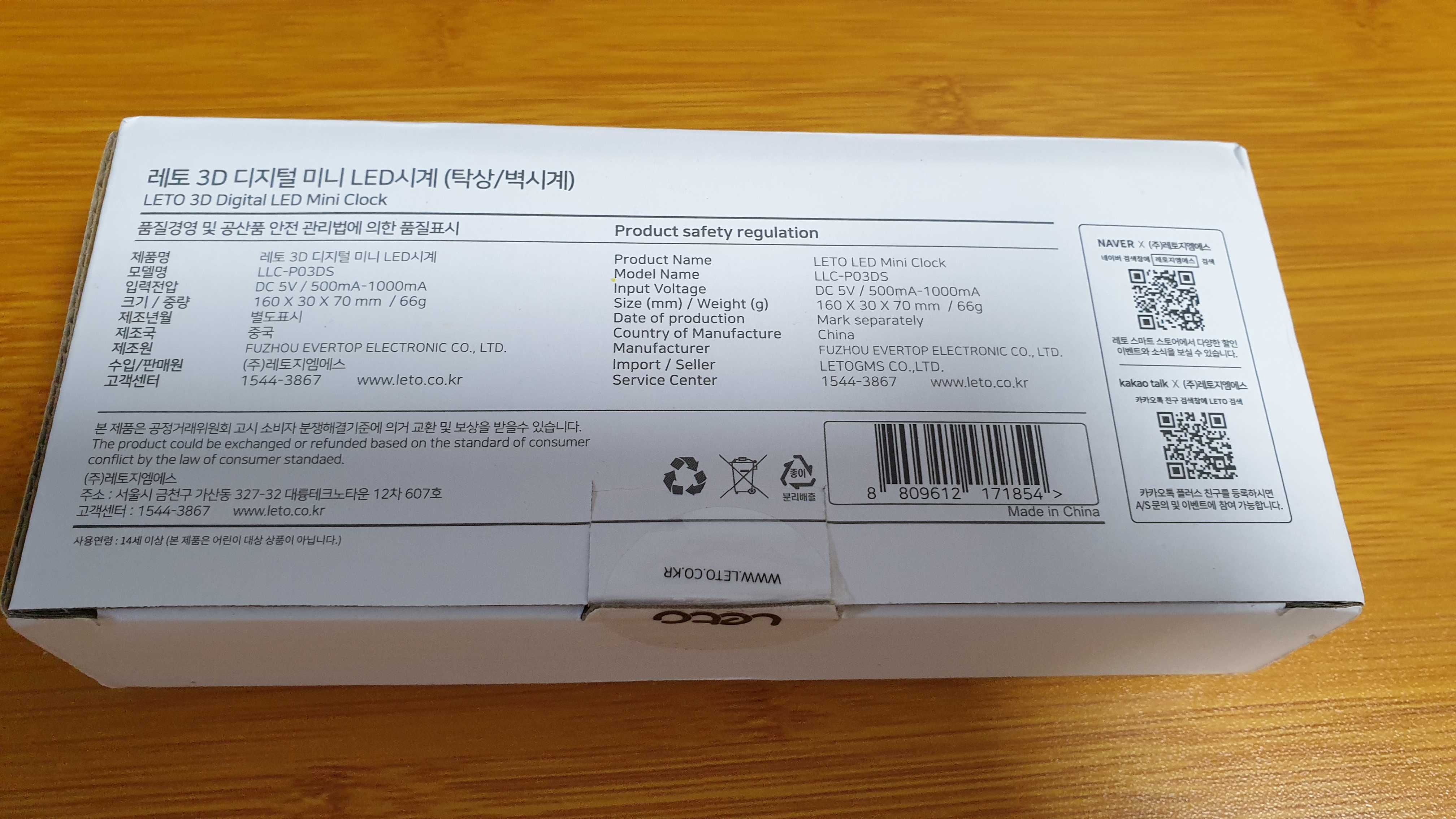 탁상시계이고 밤에도 시간이 보이면 좋겠다고 생각했지요