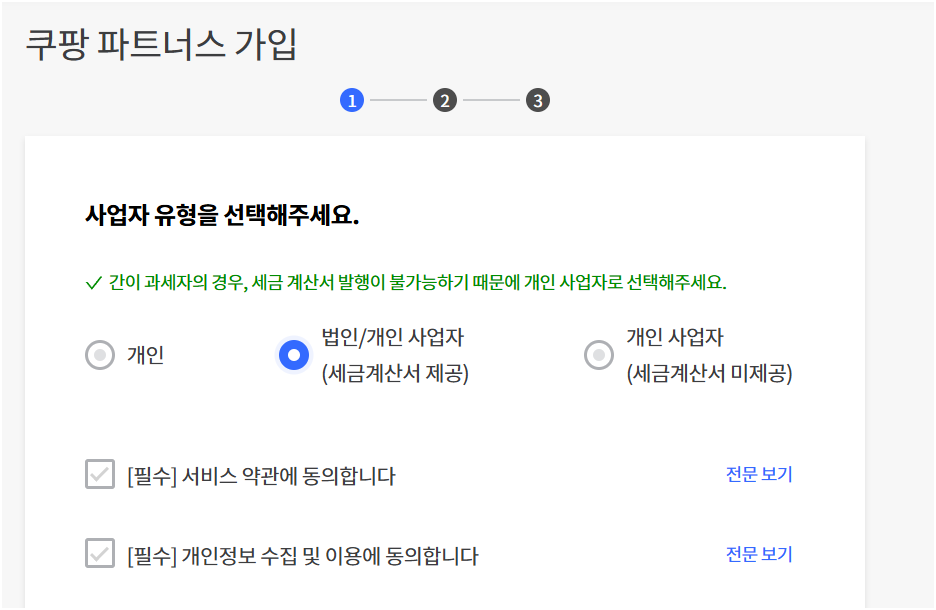 2. 개인이므로 개인선택하고 진행합니다.