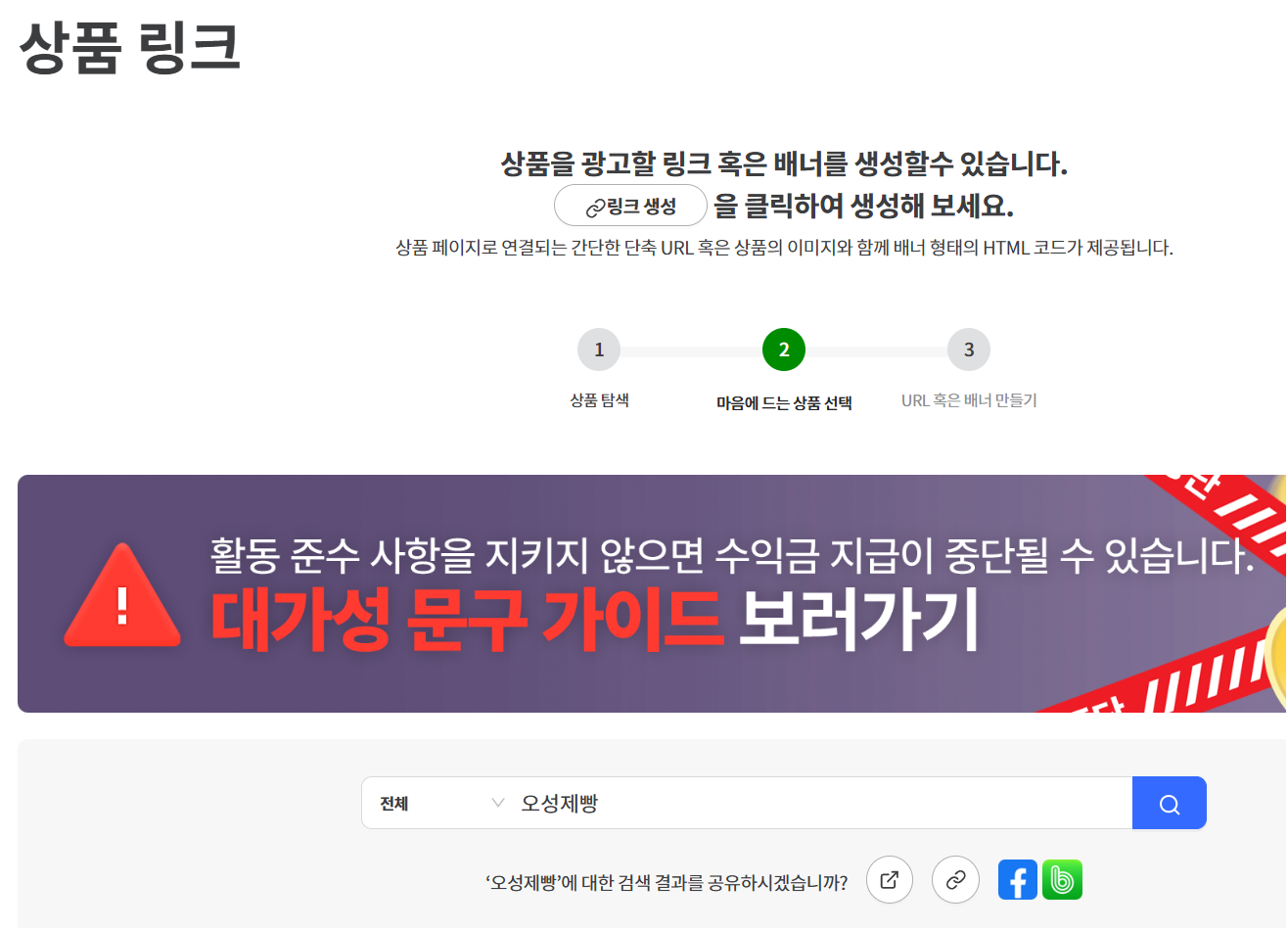 오성제빵기 링크생성을 누를게요.