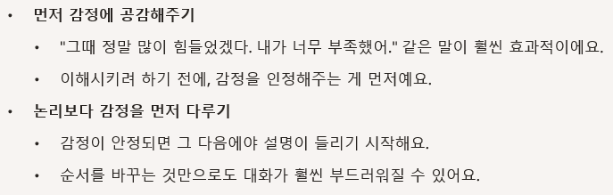 - 논리보다 감정을 먼저 다루기